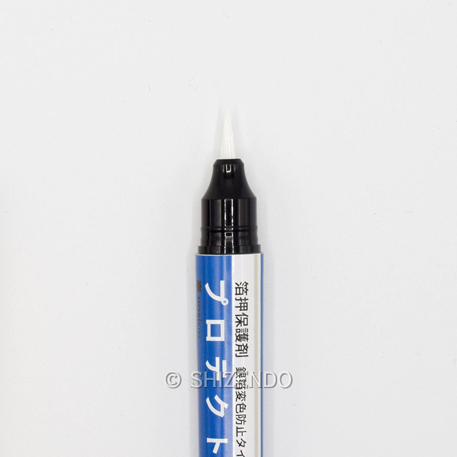 油性の保護剤と違い、箔押し直後の箔に使用することができます。