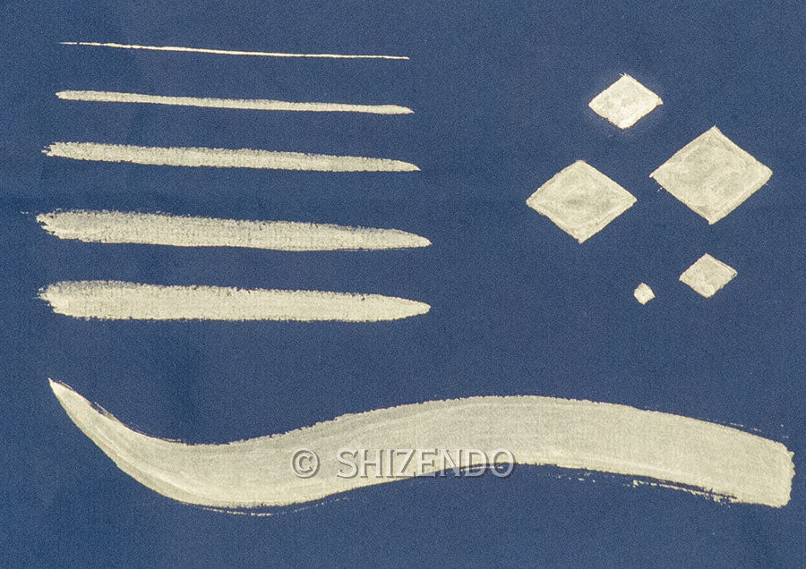 金箔を細かく練り潰し、溶かしたニカワ等と共に練ることで小さくちぎれて微粉末状になった物を「金泥」と呼びます。金箔の厚さは約0.2μで、これを横方向に平均3μ程度まで粉砕しています。その後、大量の水で膠分のみを洗い流し、乾燥させた粉は小麦粉の様に細かく滑らかで、描画材料として優れています。