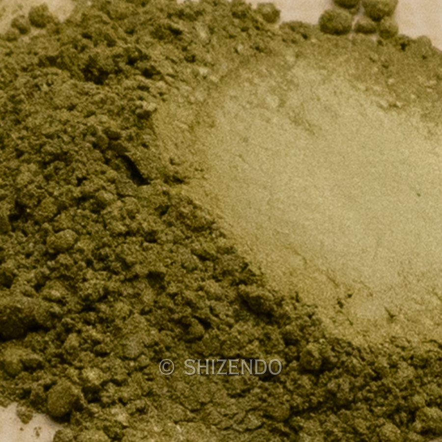 金箔を細かく練り潰し、溶かしたニカワ等と共に練ることで小さくちぎれて微粉末状になった物を「金泥」と呼びます。金箔の厚さは約0.2μで、これを横方向に平均3μ程度まで粉砕しています。その後、大量の水で膠分のみを洗い流し、乾燥させた粉は小麦粉の様に細かく滑らかで、描画材料として優れています。
