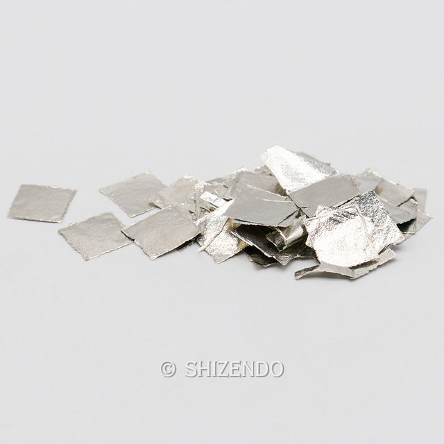 錫箔を細かく切ったものです。四角く切った切箔は小石とも呼ばれています。使用用途:絵画・襖紙・料紙・工芸・日本画・装飾などに