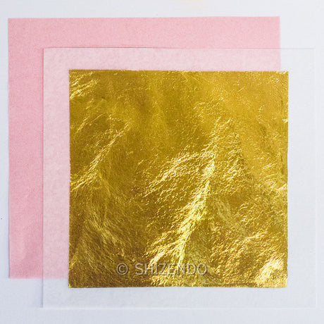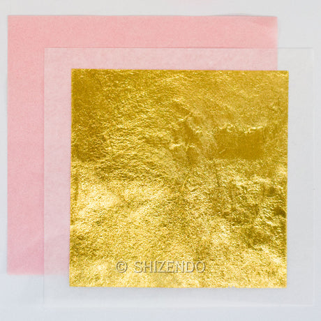 純金箔は純金・純銀・銅を定められた配合で混ぜ合金としたものを打ち伸ばして製造し、金属の割合により微妙な色の変化をつけています。